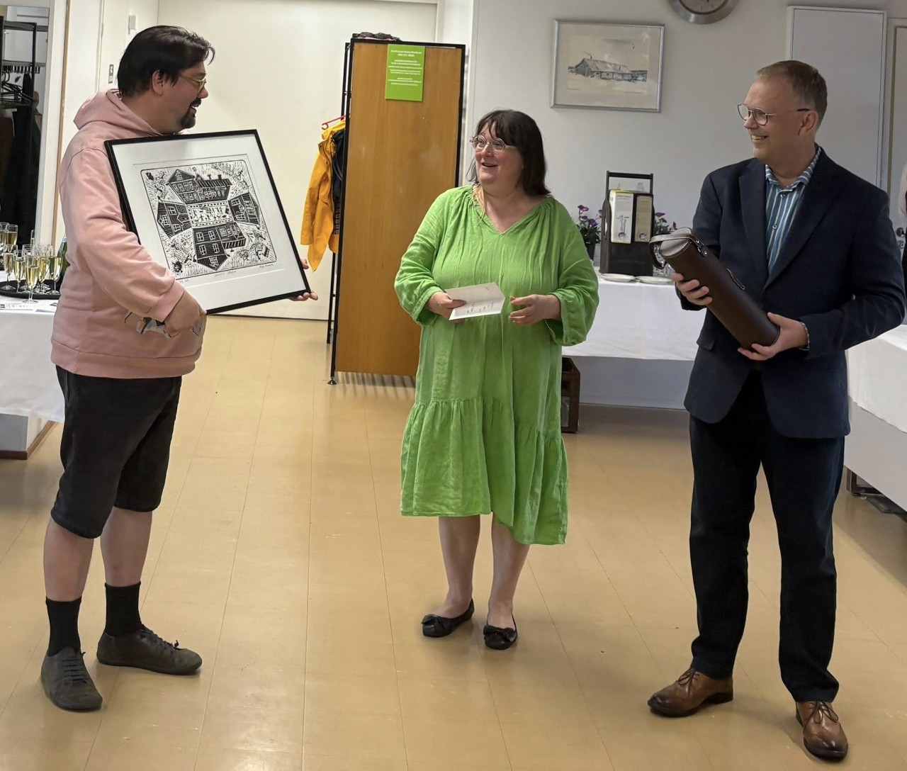 Kesän näyttely jälleen keltaisessa talossa. Kuraattorina Veikko Halmetoja joka luovutti viestikapulan Iittalan kauden päättäjäisissä uudelle kuraattorille Emmi Kalliolle.